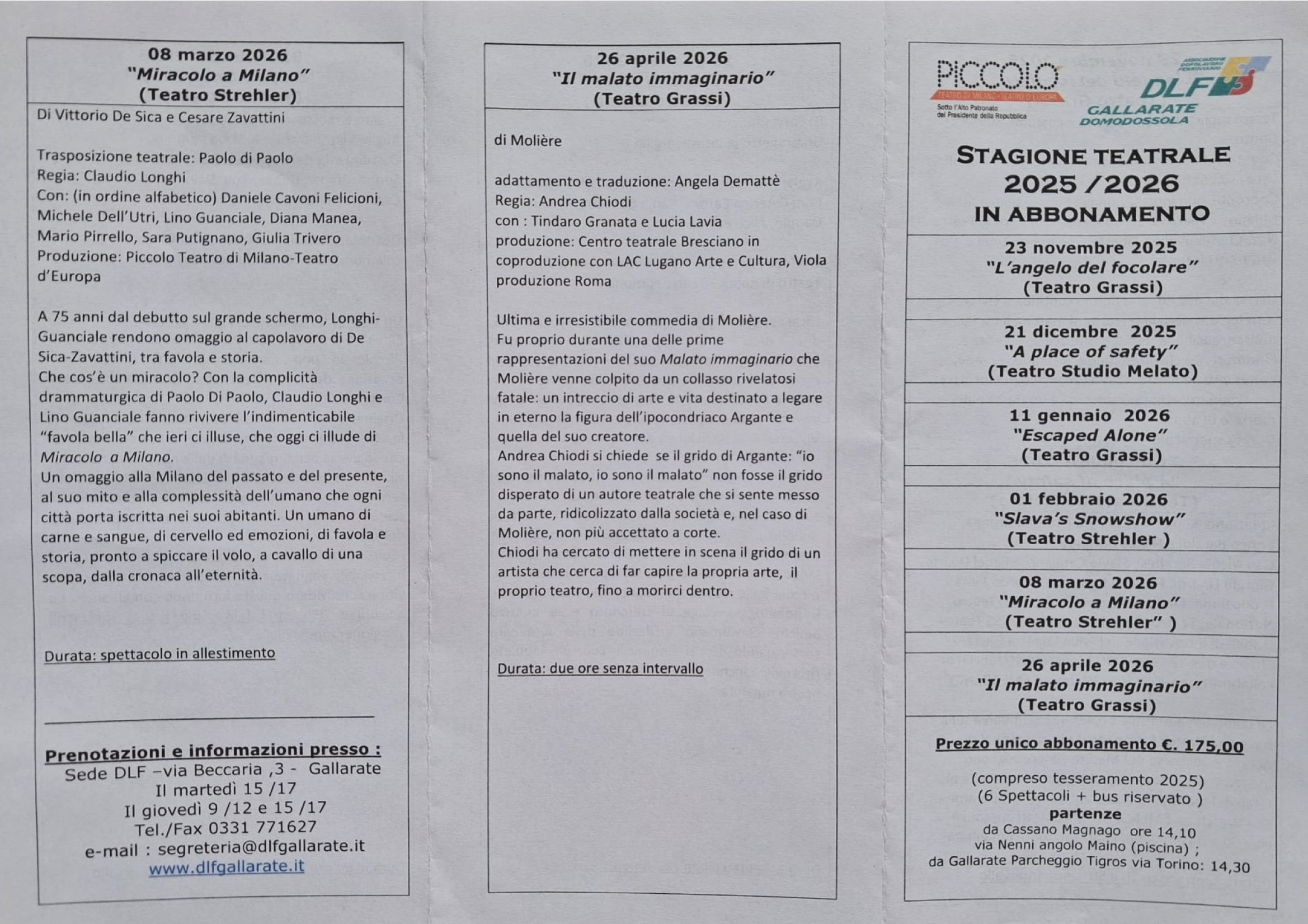 Sede DLF –via Beccaria ,3 - Gallarate il martedì 15 /17 e il giovedì 9 /12 e 15 /17 Tel./Fax 0331 771627; e-mail : dlfgallarate@dlf.it " Programma 2025/2026 "